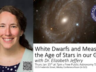 We are pleased to welcome Elizabeth Jeffery, Assistant Professor of Physics at California Polytechnic State University, for a talk on white dwarf stars and what they reveal about the age of stars in our galaxy. Dr. Jeffery’s research focuses on white dwarf stars — the dense remnants left behind after [Read More…]
